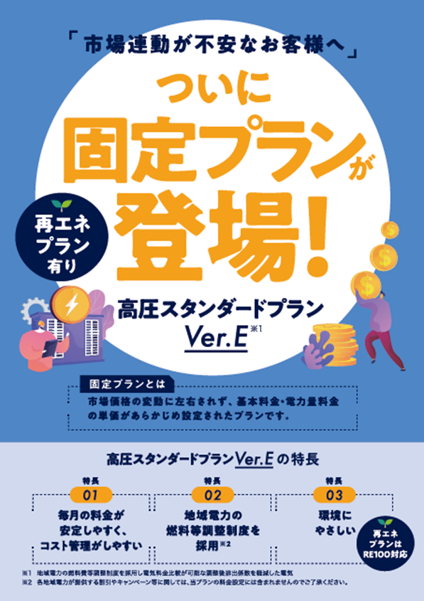 「高圧スタンダードプランVer.E」「高圧再エネプランVer.E」リリースのお知らせ